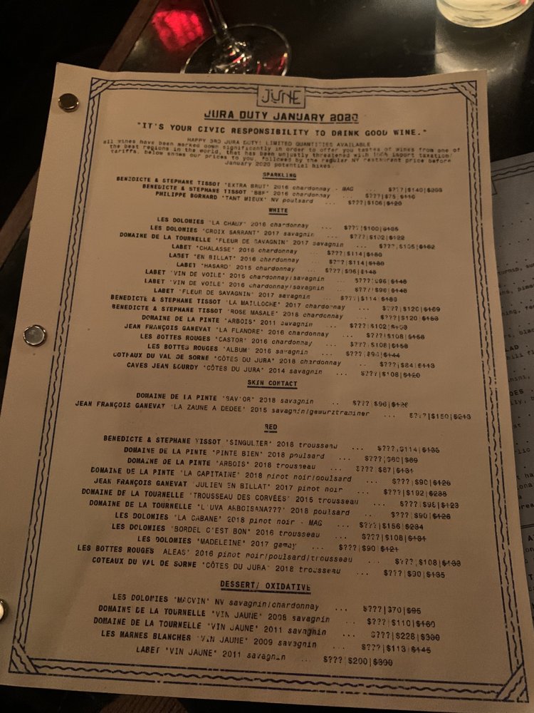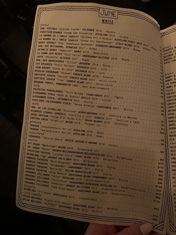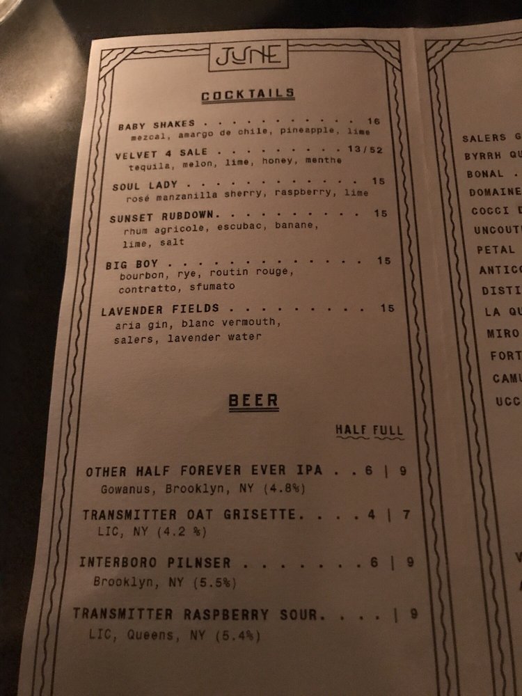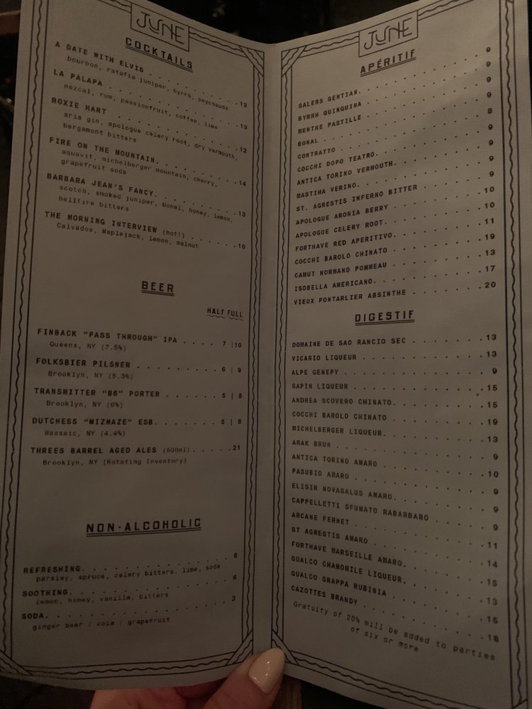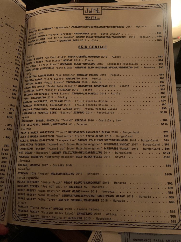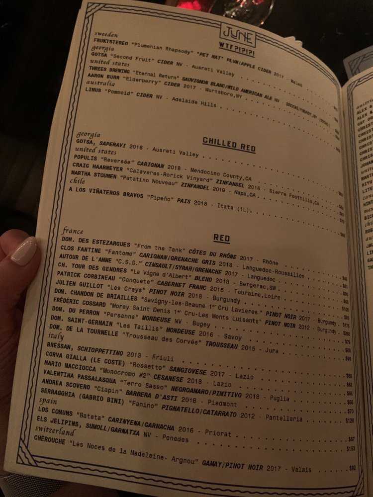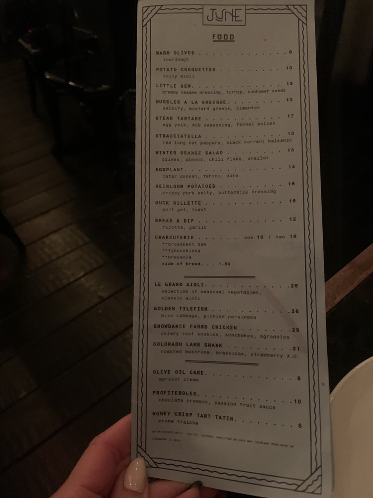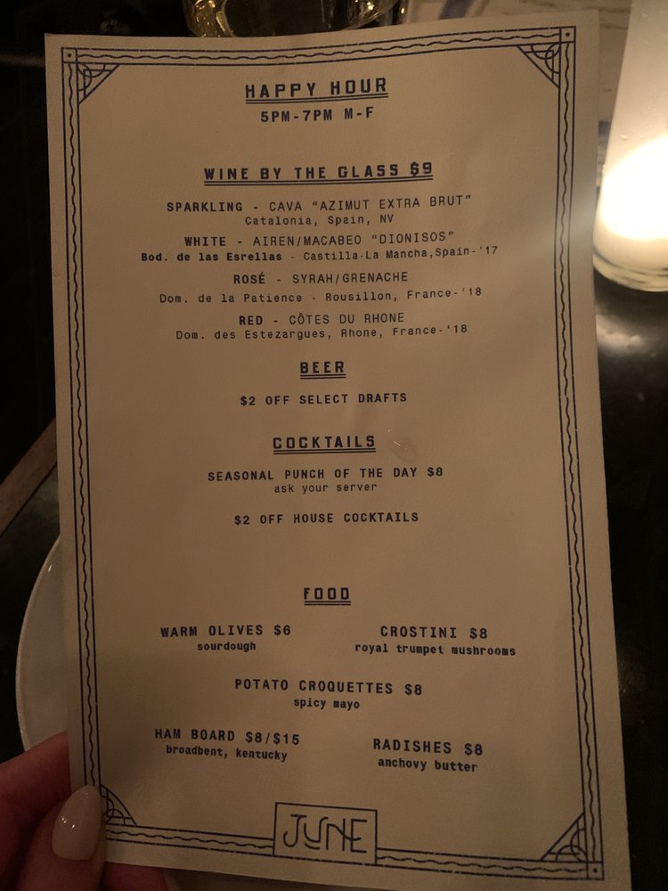 "June" is a cozy tapas and wine bar located in Brooklyn, NY, offering a unique dining experience. The menu features an array of small plates and snacks, including smoked beets, curry chicken salad, miso roasted turnips, and mac n cheese. The pantry level-up options like Japanese spicy mayo and miso butter add an extra layer of flavor to the dishes. Customers rave about the intimate and romantic ambiance, extensive wine selection, and friendly service. June's happy hour specials and 20% off bottles during the week make it a popular spot for wine enthusiasts. The vegan options, paired with the chic decor and outdoor seating, create a relaxing and enjoyable dining experience. It's a perfect place to unwind with a glass of wine and good company.